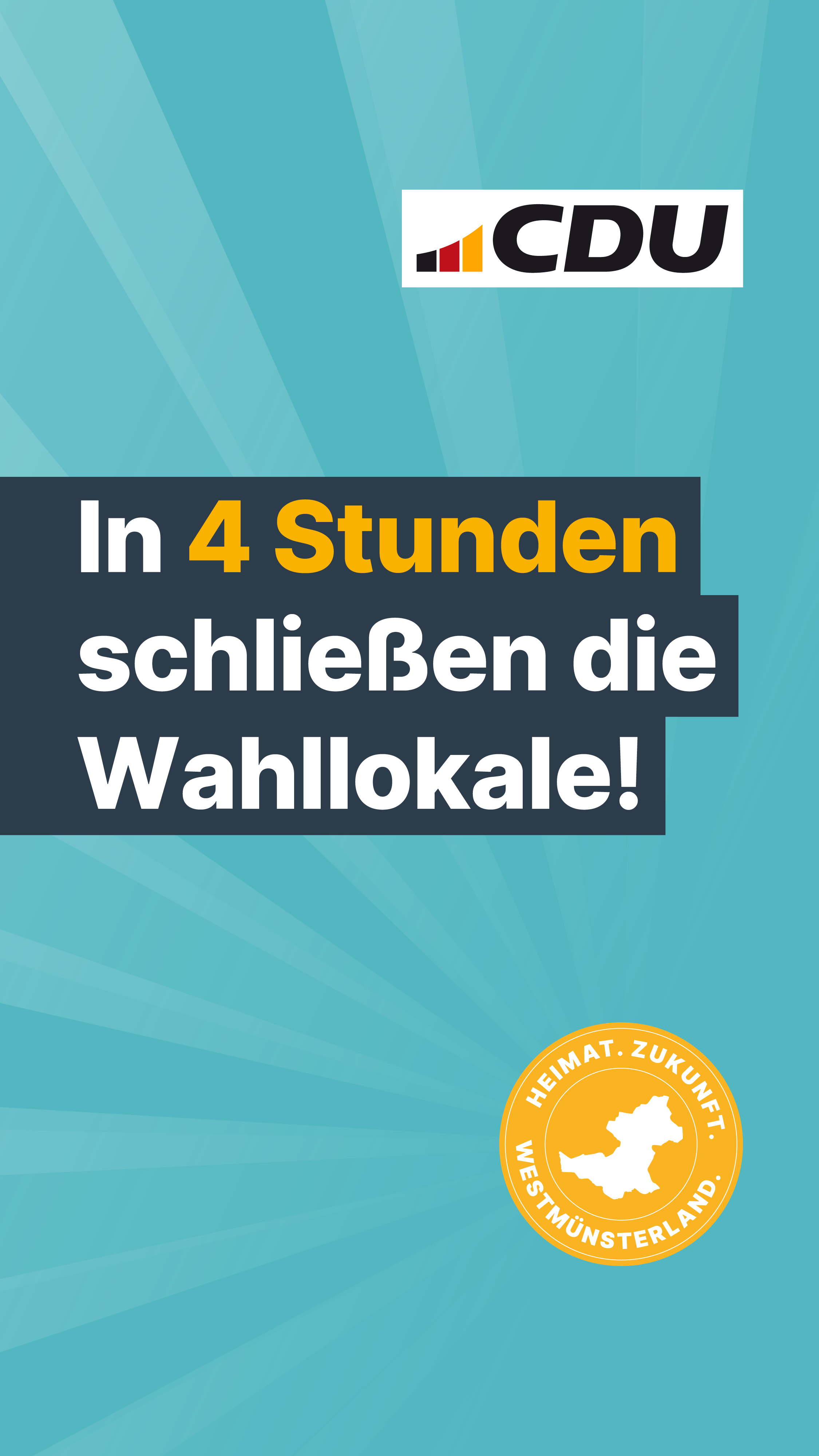 Liebe CDU-Unterstützerinnen und -Unterstützer des Westmünsterlandes, herzlich willkommen in unserem Social-Hub. Hier findet Ihr exklusives Material für Eure Social-Media-Kanäle. Einfach reinschauen, downloaden und vor allem teilen, teilen, teilen!